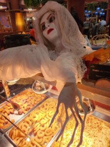 On October 31st, as night falls around 6:30 p.m., the atmosphere shifts. In the cozy setting of the Grand Magic Hotel’s restaurant, Chez Maurice, laughter turns into knowing glances, dishes take on the appearance of strange potions, and imagination is infused into every bite. The Halloween buffet, a true annual ritual for our regulars, returns with its procession of horrifyingly delicious dishes.